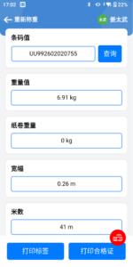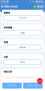 10.在重量值、纸卷重量、宽幅、米数、瑕疵记录,操作全部完成后,可进行标签与合格证的打印。