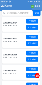 1、点击产品记录,可查看UD卷列表,顶部可扫码或数据关键字进行更精确的查找