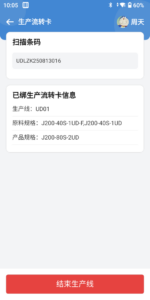2. 点击“结束生产线”按钮,可更新当前生产线的运行状态,请谨慎操作!