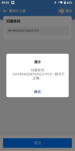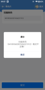 2.当扫描的条码 不合规、不存在,或 当前原料规格与条码对应的产品规格不一致时 ,系统将弹出警告提示。
