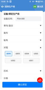 1. 可使用 PDA设备扫描 对辊生产流转卡上的条码 进行绑定操作,绑定成功后,系统会显示已绑定的生产流转卡信息。