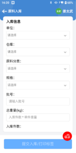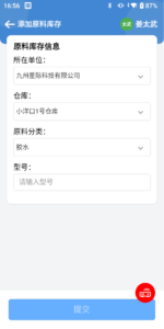 1、点击“原料入库”进入信息填写页面