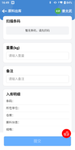 1、点击原料出库进入操作页面