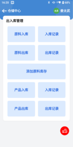 1、PDA首页点击仓储中心进入出入库管理页面