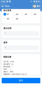 3. 提交成功后,配胶记录会自动刷新,并新增一条最新记录。
